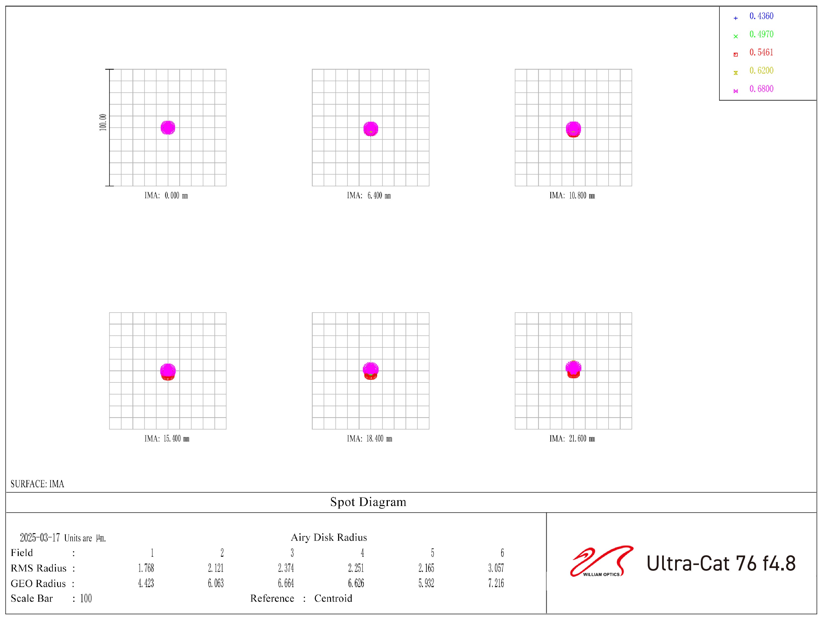 Researched and developed by WO, the innovative 5-element Petzval design redefines telescope optics. This advanced system achieves a flawless spot diagram across a medium-format image circle.